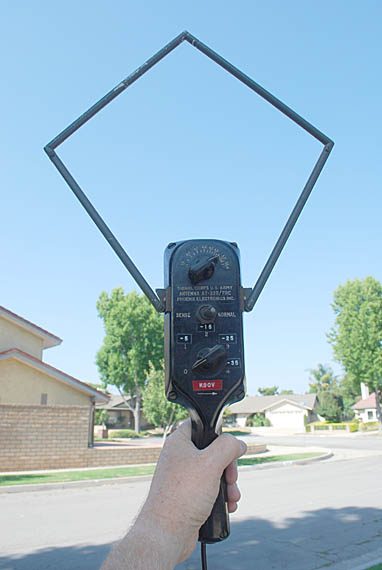 The most popular six meter loop is the Army surplus AT-339/PRC from the Korean War era, available at low cost. Ruggedly built for field use, it tunes 38 to 55 MHz with a built-in attenuator for strong signals and a sense circuit to resolve the back/front ambiguity. You can find other models with a little scrounging, including the older AT-249/GRD, which also covers the same range. The AT-340/PRC looks just like the AT-339/PRC, but it's for 20 to 39 MHz, making it suitable for ten and eleven meter use.