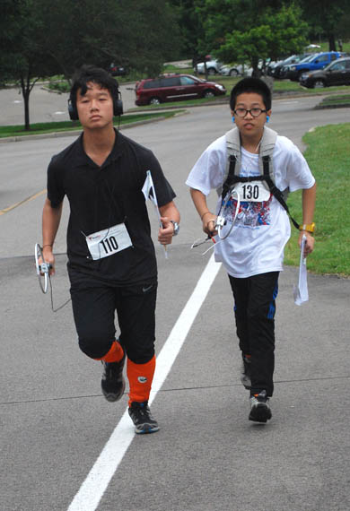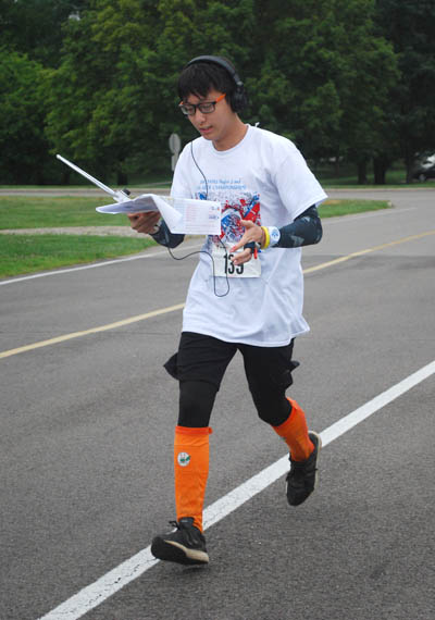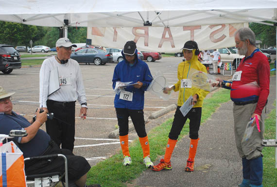 There was a deep overcast as these competitors lined up at the starting line with their maps.