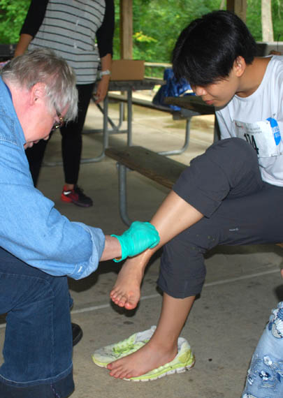 April Moell WA6OPS was kept busy treating minor wounds and rashes.