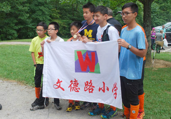As everyone prepared to go home, some of the Chinese students proudly displayed their school's banner.
