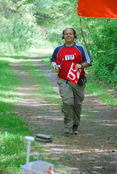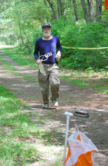 Mark Diggins VK3MD in the 80-meter finish corridor on his way to a bronze medal in M40 category.