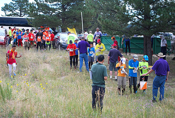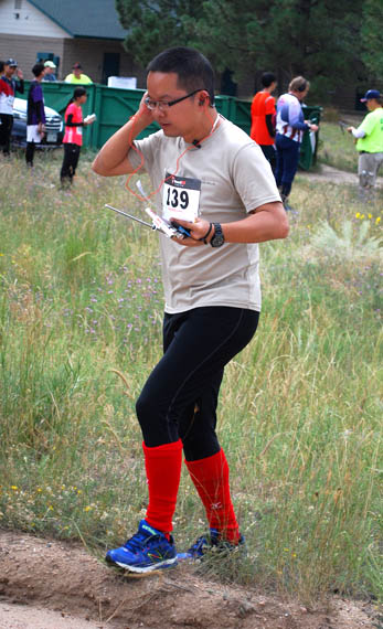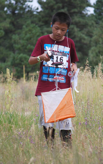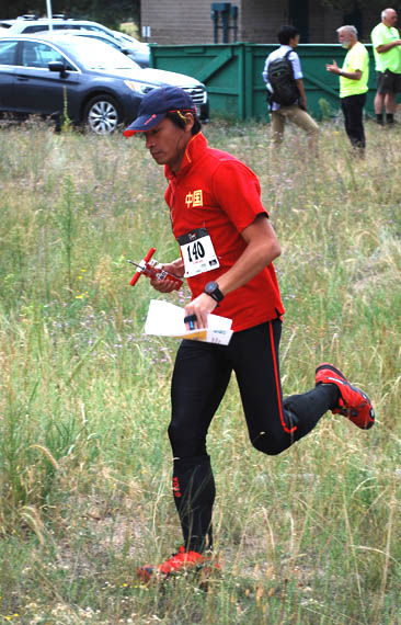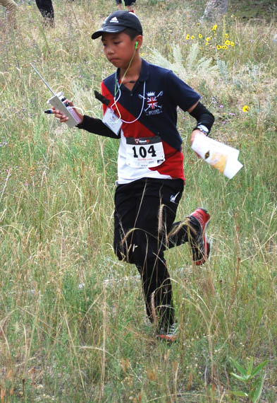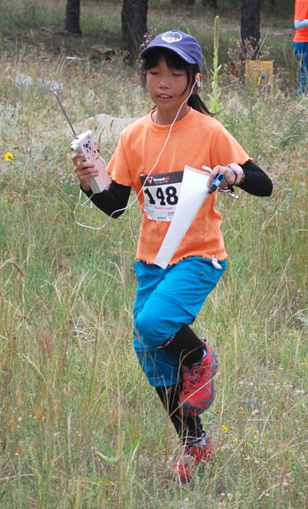 Yuanye Yang, age 12, leaves the starting line. There was no starting corridor, so competitors tended to go in different directions, depending on their categories and the transmitters they were required to find.