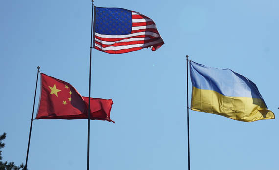 Flags of China, USA and Ukraine flew over the headquarters building, representing participants from these countries. (Photo by Dean Mertz KØMKT)