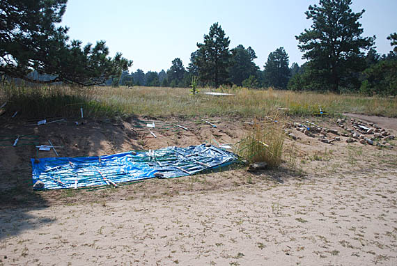 Two-meter ARDF sets are large, so two tarps weren't enough to hold them.