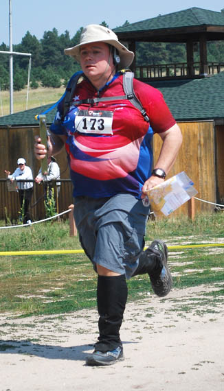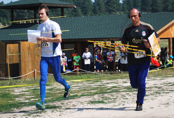 Nicolai Mejevoi of Rockford, Illinois sets off on a gold medal winning run in M50 category.
