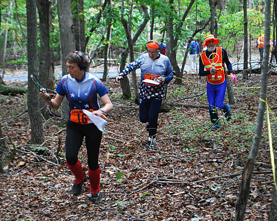 The sprint starting corridor went from the long driveway of the Huberman property into the wilderness. In this group of starters were Lori Huberman, Jay Hennigan WB6RDV and Dale Hunt WB6BYU.