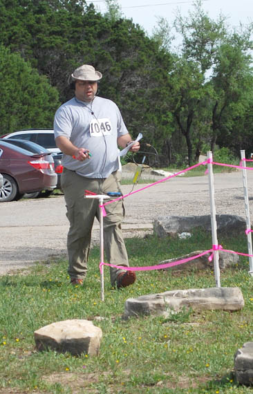 The two-meter starting line was near the entrance to the equestrian area and the corridor zigged and zagged downward from there. Carefully leaving the line is Richard Metcalf AG1B in M70 category.