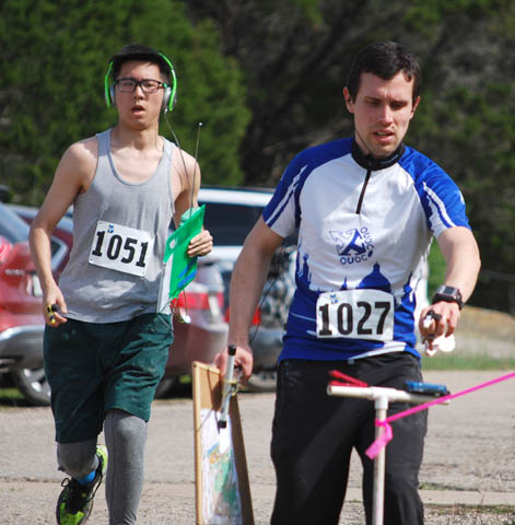 Racing each other to the midpoint control are Norbert Linke (M21), followed by Charlie Xu (M19). Each will capture gold.