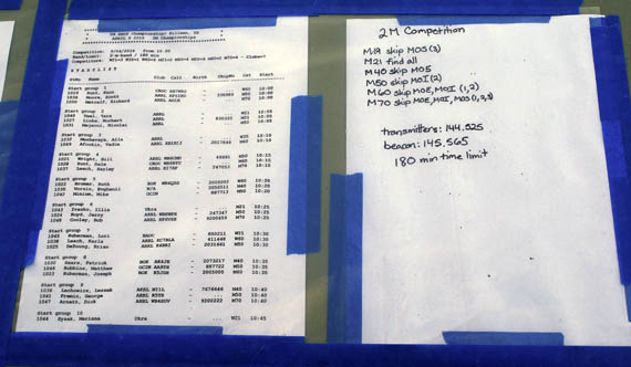 The starting order was posted in the assembly area, along with transmitter frequencies and the transmitters to be skipped by category. No more than three persons started at once. Those in each group were unrelated and in different categories.