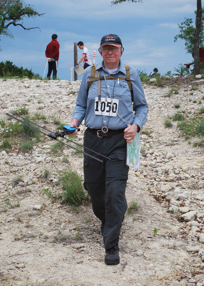Also holding his antenna high is Joseph Huberman K5JGH, who will win M60 gold.