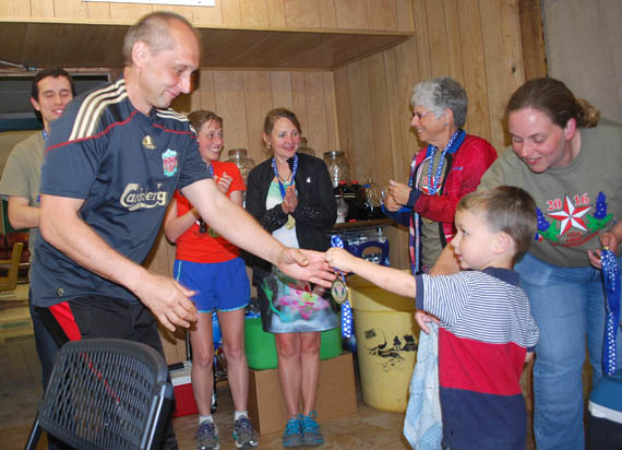 Saturday evening, after everyone had dried out and put on clean clothes, they gathered for a barbecue buffet and awards.
