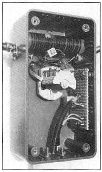 Tuning capacitor C1, shown in the middle of the box, must be an air variable type. Small air variables are becoming hard to find. Try your local surplus emporium or electronic swap meet. Dan's Small Parts and Kits at (801) 515-6373 has a nice Millen 100 pF air variable with a long shaft. Measure your capacitor before mounting it, as it might be too bit to fit on the box side wall.
