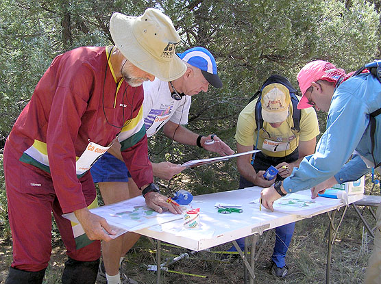 Two-meter start group #2 prepares maps and map boards about ten minutes before setting out.