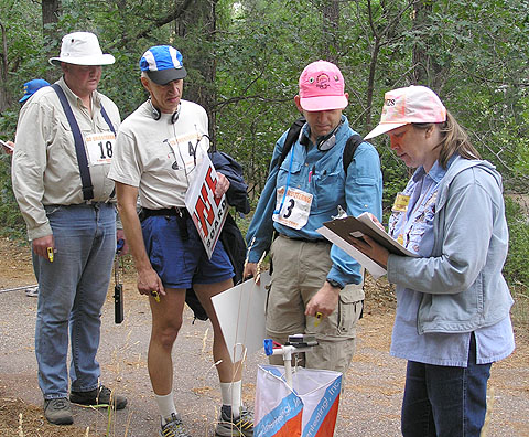 Ruby Allen KC5NZS verified the SportIdent tag numbers of all competitors as they arrived at the starting area.