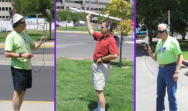 Three competitors checking their gear: Jay Hennigan WB6RDV of Santa Barbara, CA, Scot Barth KA6UDZ of Covina, CA and Mike Cegelski K8EHP of Cleveland, OH.