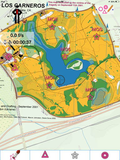 I think the coolest MnC feature is its ability to provide a virtual on-foot foxhunt experience with all of the fitness benefits and none of the transmitting hardware. Have a friend create an ARDF course map in the device for you and tell MnC to hide the foxes, so you won't know where they are. Then take the app, plug in your earbuds, go to the start point and switch to navigate mode. Slide the navigation arrow to display "#1-MOE."