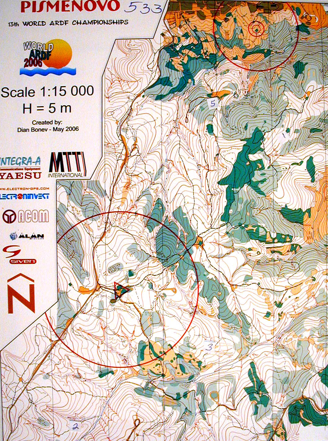 Seven Team USA members participated in training sessions provided by the Bulgarian organizers. For up to a week before the championships, they joined dozens of others who were working to improve their RDF and orienteering skills in woods and fields next to the Black Sea. Each day's training run was 5 to 7.5 miles with total climb of 350 to almost 1000 feet. Average daytime temperature was about 70 degrees Fahrenheit. NZØI wrote: "We discovered the joys of Bulgarian blackberry bushes. They tend to cover the clearings with about 18 inches of growth, just low enough to fool one into thinking that it is easy to run through them. Don't attempt it without iron gaiters on! The woods were mostly pretty runnable, and a better choice over the deceptive clearings."