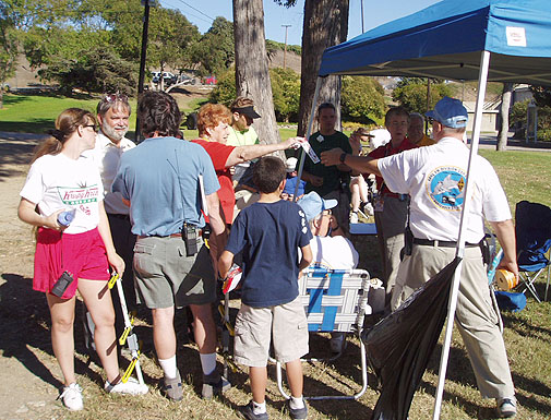 Many people helped make HamCon/Foxhunt 2003 a success. Noah Brandt KF6FOJ and others from the Military Museum were excellent hosts. Mike Cramer KC6YHM, Cheryl Thorpe KE6TZU and Gene Thorpe KB6CMO of Fullerton Radio Club went to many meetings and kept the Transmitter Hunt Table at the convention site going. Jon and Jackie Schaffer, W6UFS and WA6AKP of the Hospital Disaster Support Communications System, kept the competitors hydrated and provided important First Aid services. Jim and Bev Pitman WA6MZV and WA6TIU, the HamCon Co-Chairs, arranged for the site and made sure we had gift certificates for the winners. Other prizes were provided by Fullerton Radio Club and the Nestle Company. Last but not least, it could not have happened without April Moell WA6OPS, who did a myriad of tasks including start, finish, and scoring.