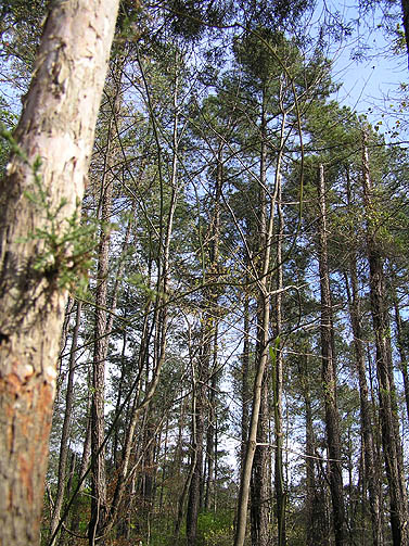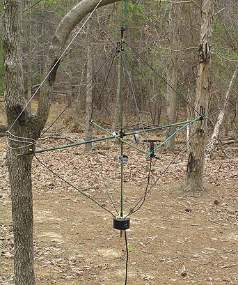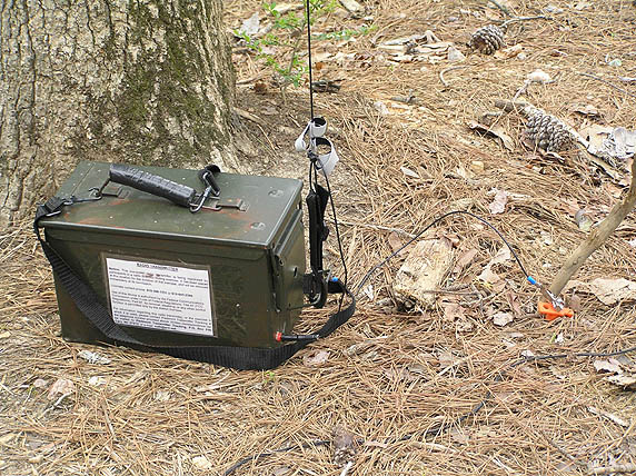 The 80-meter transmitters used very long wire antennas, launched high into the tall trees. There were no radials, just ground stakes.