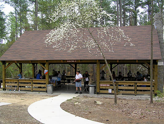 Everyone gathered at this shelter at the south end of William B. Umstead Park on Friday afternoon for a practice session and cookout.