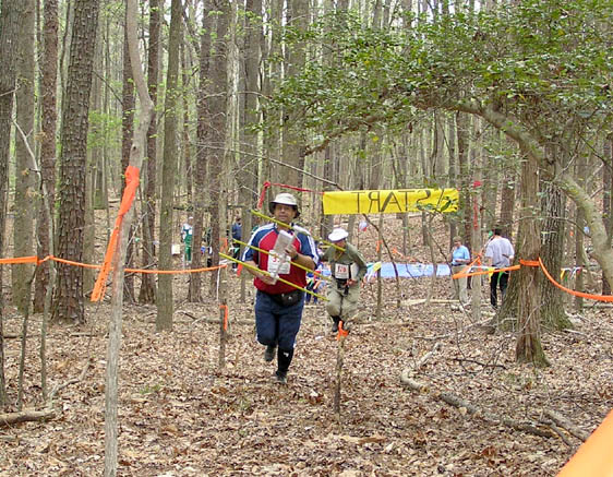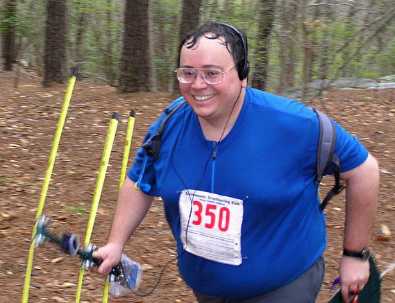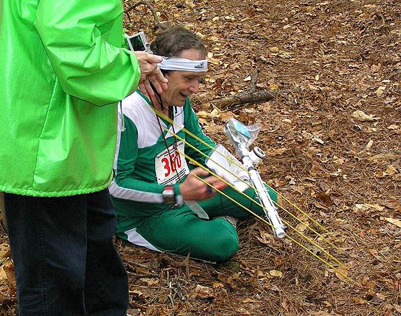As he ran in and started to punch at the finish, Jay Hennigan WB6RDV tripped and fell. Fortunately, he didn't break his antenna as he did in the 2m event in 2004, and he happily ended up as the second-place USA finisher in M50.