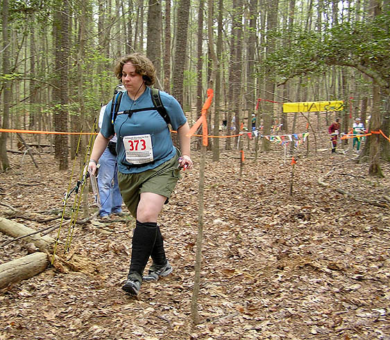 Mary Cegelski KC8YLC in the 2m finish corridor.