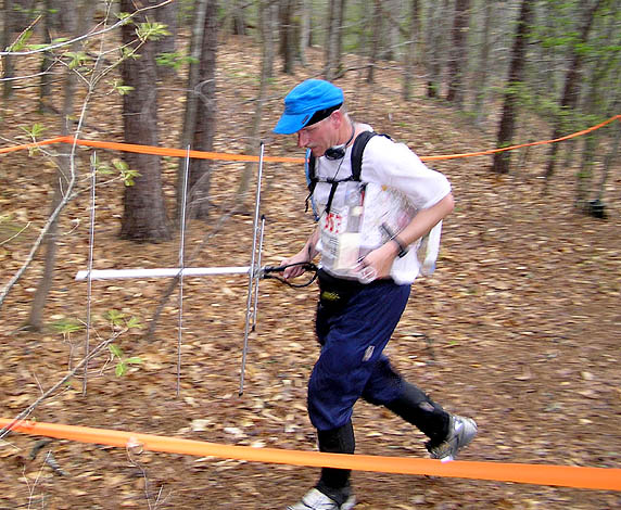Harley Leach KI7XF heads down the 2m finish corridor on his way to a silver medal in M60 category.