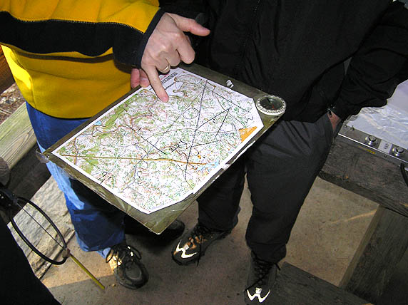 Reviewing a 2m map after the hunt. Note the marked bearings.
