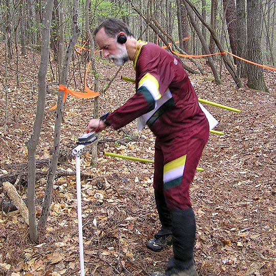 Working his way through the damp woods on 2m is Dave D'Epagner KØQE.
