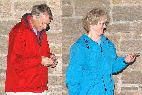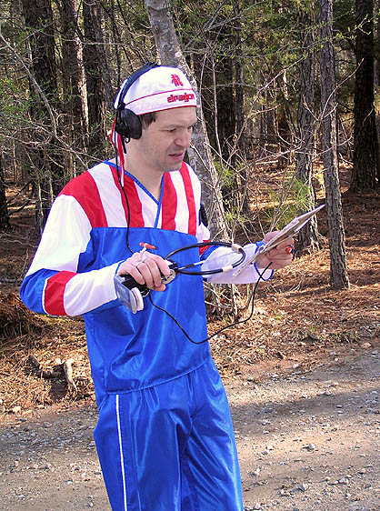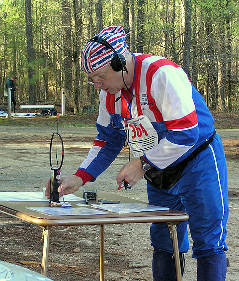 Dick Arnett WB4SUV of Kentucky checks the compass attached to his 80m ARDF set as he prepares his map before the hunt.