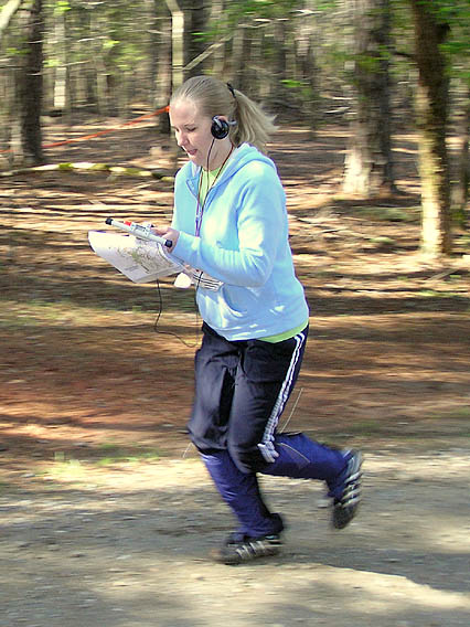 Harley Leach KI7XF streaks up the starting corridor on the 80-meter hunt.