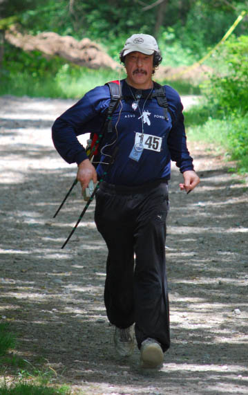 Bob Frey WA6EZV ran by the shore of Houghton Pond on his way to the finish corridor.