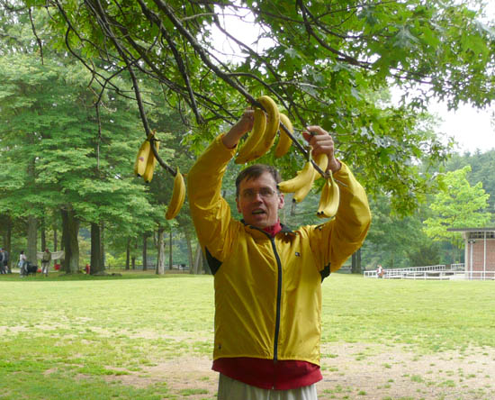 Also on the medical team was Pavel Nelyubin, a cardiac nurse at Brigham and Women's Hospital in Boston. He is setting up the "banana tree" to provide nourishment to returning foxtailers.