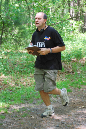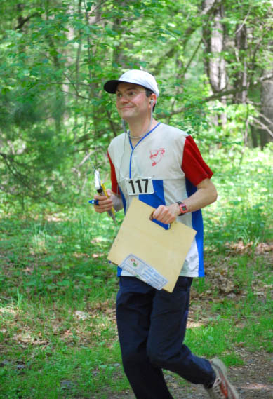 Mark Diggins VK3MD in the 80-meter finish corridor on his way to a bronze medal in M40 category.