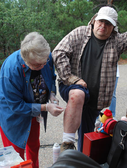 April cleaned up some scrapes and scratches that Bill Smathers KG6HXX got on Wednesday.