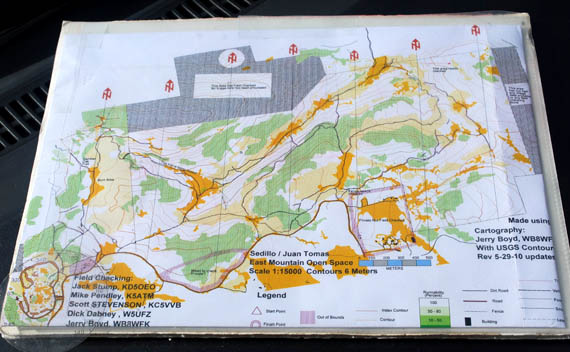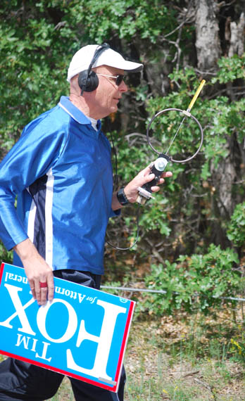 Many competitors mounted their maps and covered them with plastic. That kept them flat and made marking bearings easy. Discarded political campaign signs are ideal for this. Harley Leach KI7XF thought that one for candidate Fox was especially appropriate.