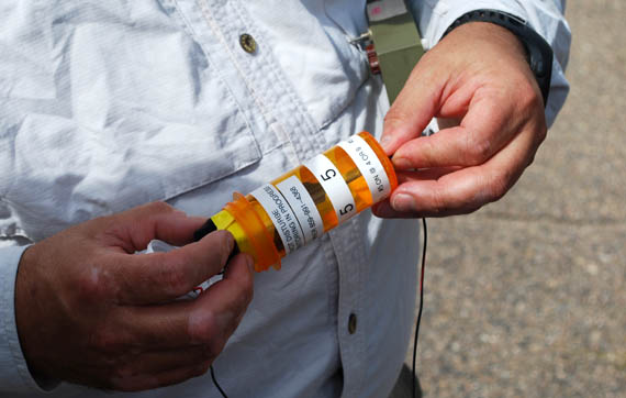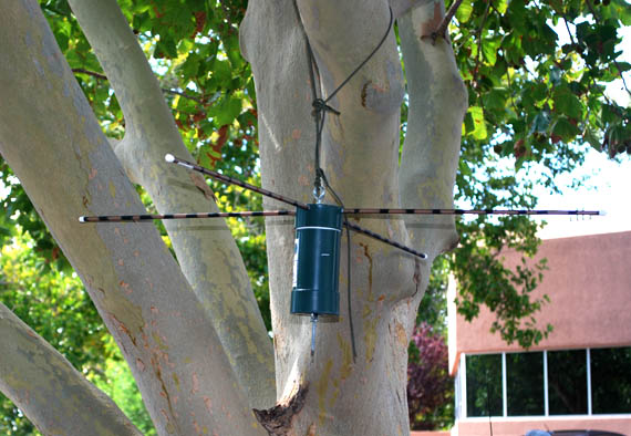 AARC used these rugged lightweight two-meter AM keyed-carrier transmitters that are built into PVC pipe sections. The omnidirectional horizontally-polarized "turnstile" antenna consists of four 19-inch removable rods that protrude from the pipe near the top.