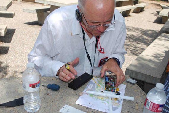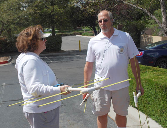 Kuon Hunt KB7WRG shows her new 80m ARDF set to Jay Hennigan WB6RDV.