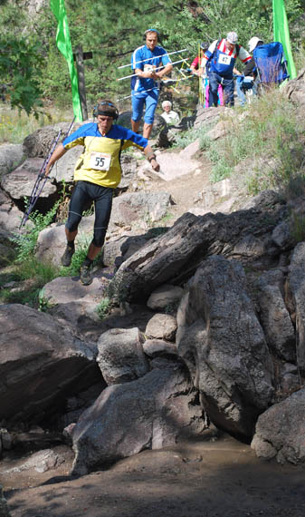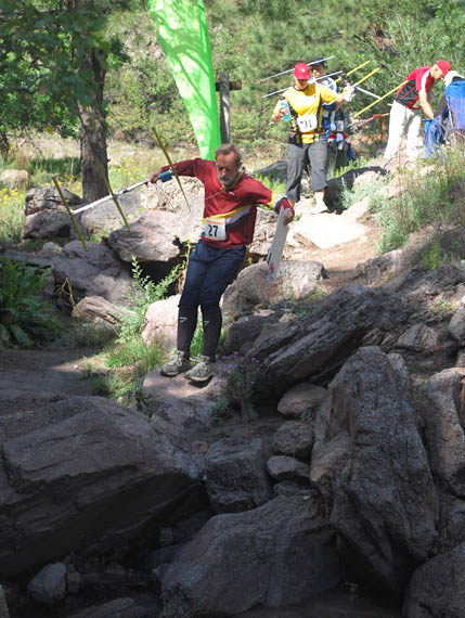The two Ukraininan competitors were the fastest on the rocks. Volodymyr Gniedov is followed by Kostiantyn Zolochevskyi.