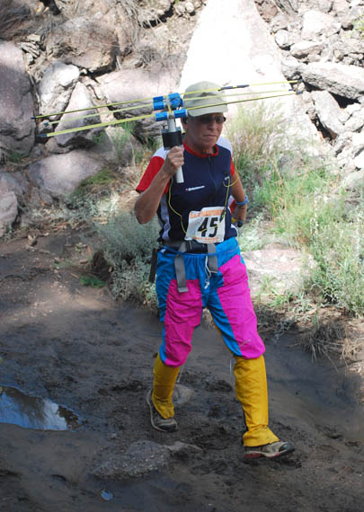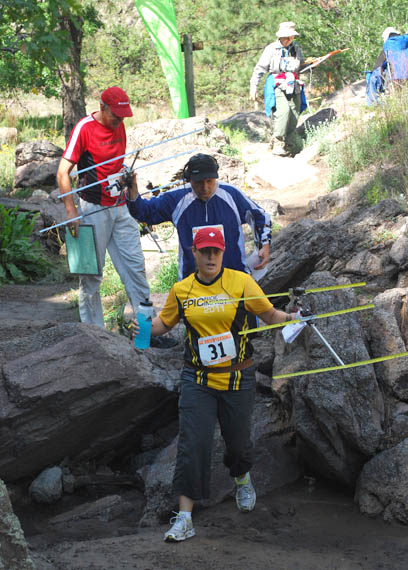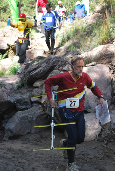 You had to be sure-footed to get from the starting line down into the corridor at high speed. Fortunately, nobody fell along the way. In this group, Bob Cooley KF6VSE was first.