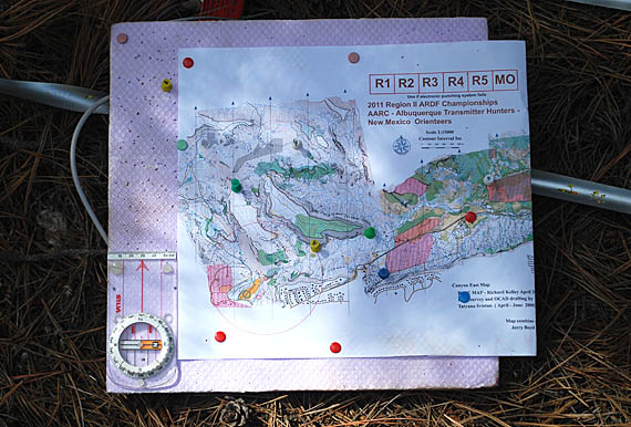 ARDF championships in Albuquerque have always had bus transportation to the venues. It's important for everyone to arrive and depart at the same time, parking at the sites is often quite limited, and buses will provide rapid evacuation of the area in case of a fire. Early on Saturday, the luxury coach headed out to an unknown location. It turned out to be just north of Los Alamos, the town best known as the site of the secret Manhattan Project during the second world war.