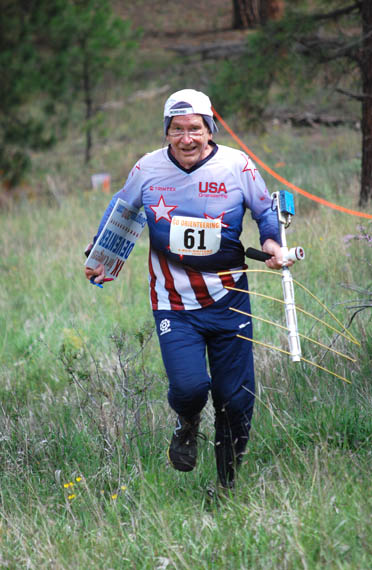 Grant Van Skiver VE7GVS punches in at the two-meter finish to qualify for a R2 gold medal in M21 category.