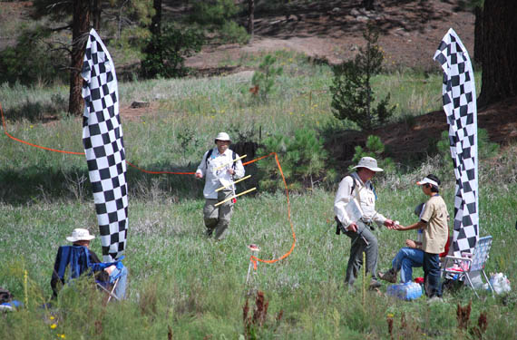 At the two-meter finish line, LAARC volunteers were ready to write down times as a backup to the electronic scoring system. Other volunteers had water and Gatorade ready for the finishers.