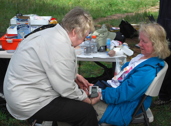 Just as a precaution, April Moell WA6OPS checked the blood pressure of Karla Leach KC7BLA from Bozeman, MT.