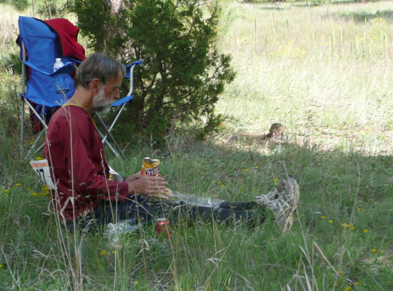 Bob Cooley KF6VSE of Pleasanton, CA unwinds after his 2m run. He earned second place in M60 category among the R2 competitors.