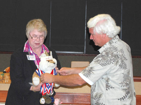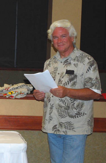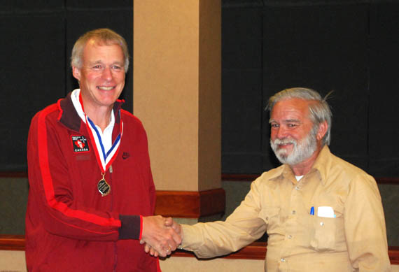 Co-chair Mike Pendley K5ATM presided over the awards ceremony at the banquent, where medals for the two-meter competition were presented. Co-chair Jerry Boyd WB8WFK wanted to be there too, but he was busy getting ready for the next morning's 80-meter course.
