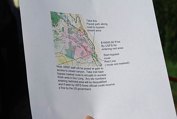 The organizers gave participants a special map page showing the closure area and the detour that they would have to take to get to the finish line.