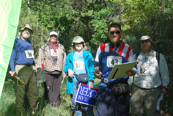 The first group of 80m starters is ready. Left to right are USA competitors Dale Hunt WB6BYU, Bill Smathers KG6HXX, Karla Leach KC7BLA, Bob Frey WA6EZV and Matthew Robbins AA9YH.