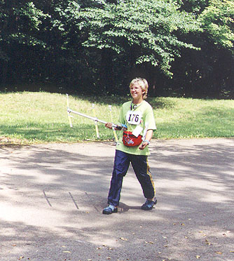 Terry Hudson KT9V is finishing his first championships two-meter course, and it looks like he had a great time. Terry does radio tracking of bobcats for the State of Indiana's Department of Natural Resources.
