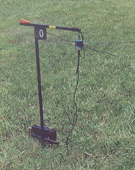 Turnstile antennas like this one on the two-meter finish line transmitter provide omnidirectional radiation in the horizontal plane.